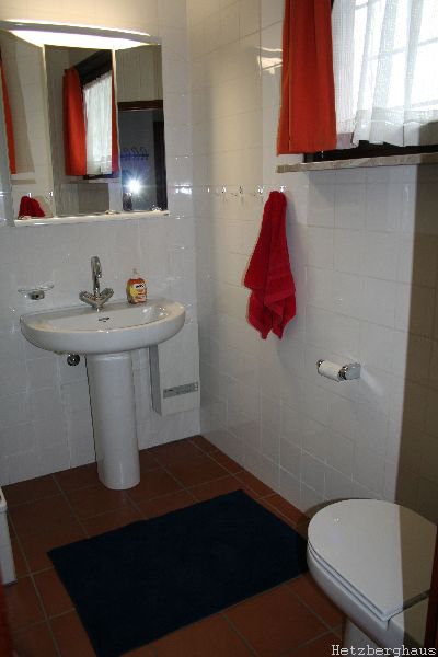 Das Badezimmer ist klein, aber fein mit Dusche, Waschbecken und WC. Ein Fön steht zur Verfügung.