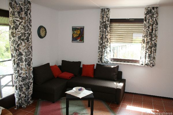 Im Wohnzimmer bietet der ausziehbare Esstisch Platz für 4 -6 Personen. Das große Fenster gibt den Blick auf den Garten frei. Hier lässt es sich gut sein. In der Couchecke vergeht der Abend schnell mit einem guten Buch oder einem spannenden Fernsehfilm. An Regentagen sorgen Gesellschaftsspiele für Unterhaltung und das Bücherregal lädt zum Stöbern ein.
